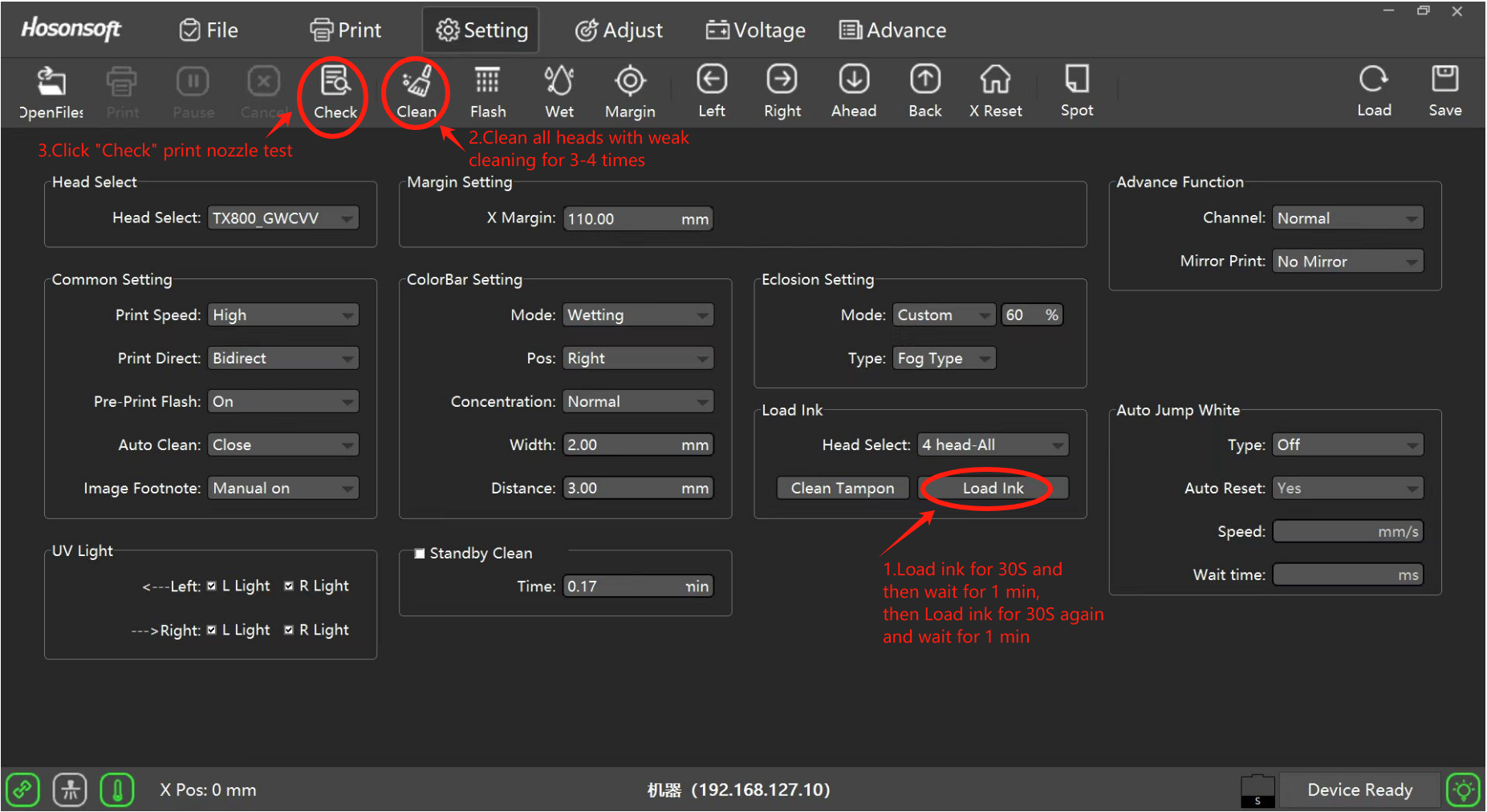 Step15:Load ink and clean printhead