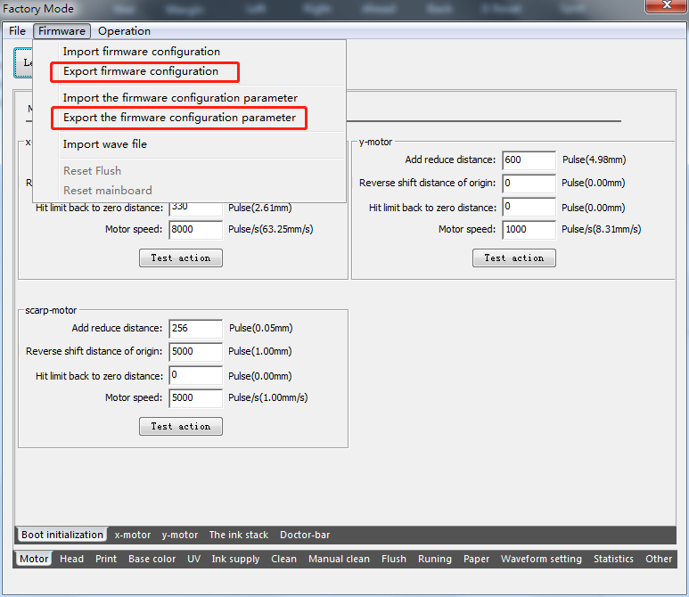 After all Settings complete, back up the parameters and configuration files of the mainboard.
