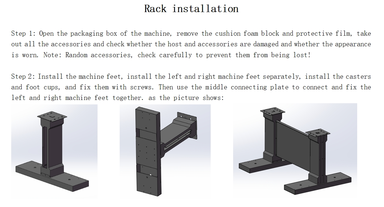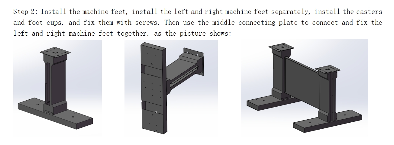 Install the foot according to the drawing or video, install the foot cup and wheel, and fix the printer.