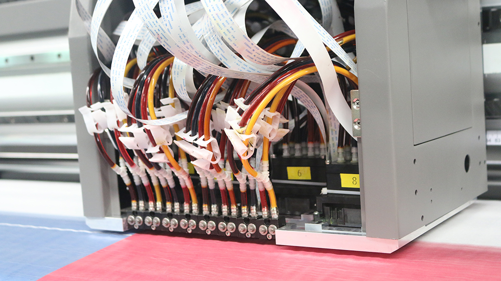 不同于別家的采用直插式墨囊,泰拓的研發(fā)部依托國際先進(jìn)的4720噴頭,發(fā)明了自己的專業(yè)供墨模塊,給8頭機(jī)裝上了工業(yè)墨路系統(tǒng),負(fù)壓壓墨、墨墊吸墨,墨路系統(tǒng)更加順暢,極大的提高了生產(chǎn)效率。