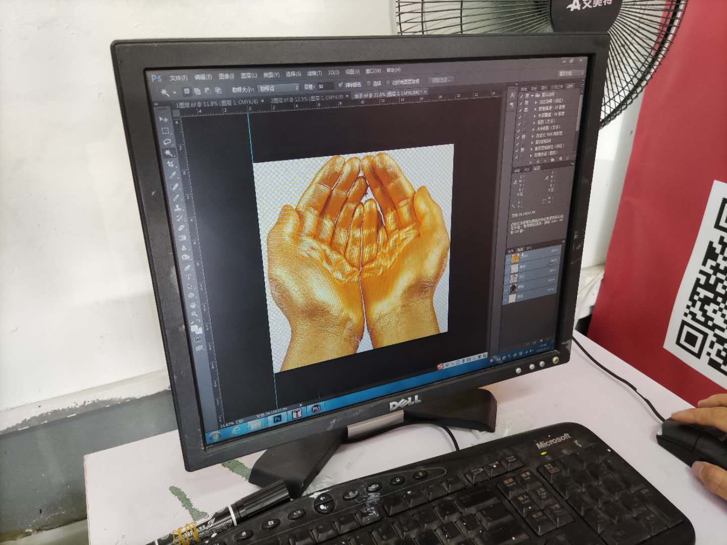 1、準(zhǔn)備好要打印的圖案,使用PS軟件進(jìn)行圖片的調(diào)色、修圖已經(jīng)摳圖處理,然后通過(guò)專色通道鋪白墨圖層,淺色部分白墨鋪厚,打印效果更好。