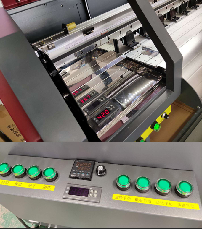 泰拓數(shù)碼的這款柯式燙畫打印抖粉一體機為給客戶帶來更好的燙畫打印方案,從很多方面進行技術(shù)革新,解決了薄膜噴頭容易堵塞、打印系統(tǒng)復(fù)雜以及燙畫牢度不夠等問題。