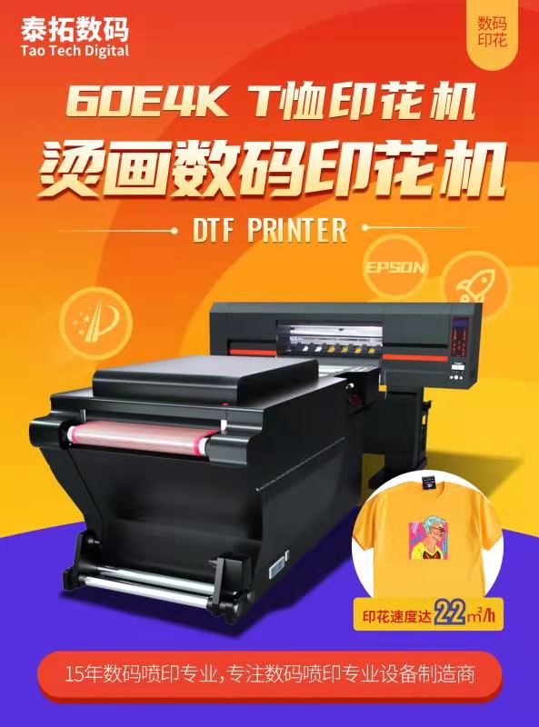 2021年泰拓數(shù)碼推出全新白墨燙畫機,搭載燙金、燙銀、七彩反光任意膜技術(shù),操作簡單,一鍵即可進行鏤空打印,無需刻字,白彩同出,免鏤空,免雕刻,擁有“任意膜”專利技術(shù)以及自動回粉專利技術(shù),獨有的隧道式烘焙系統(tǒng)確保熱熔粉加熱均勻,增加圖案水洗牢度,輸出高品質(zhì)燙畫,搭載4個知名品牌愛普生噴頭,打印時速高達22㎡/h,同時保證速度與質(zhì)量,再大批量都能準時出貨。而且這款機器的打印材料幾乎沒有限制,可打印在游泳衣、潛水衣、高彈性布、棉布、尼龍布、化纖、皮革、PVC和EVA等,不僅能量產(chǎn)T恤衛(wèi)衣,也能進行抱枕、帆布袋等用品的定制,應用范圍極廣!