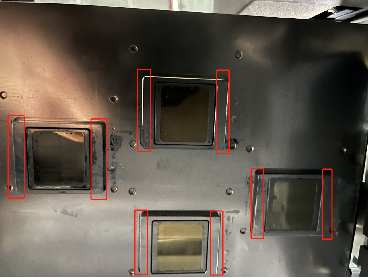 每天打印工作前后,使用棉棒和無(wú)塵布蘸清洗液,清理小車底板,清理刮片和墨棧等周邊殘留廢墨。防止固化后擦拭噴頭時(shí)將固化墨水填入噴孔,造成堵塞。