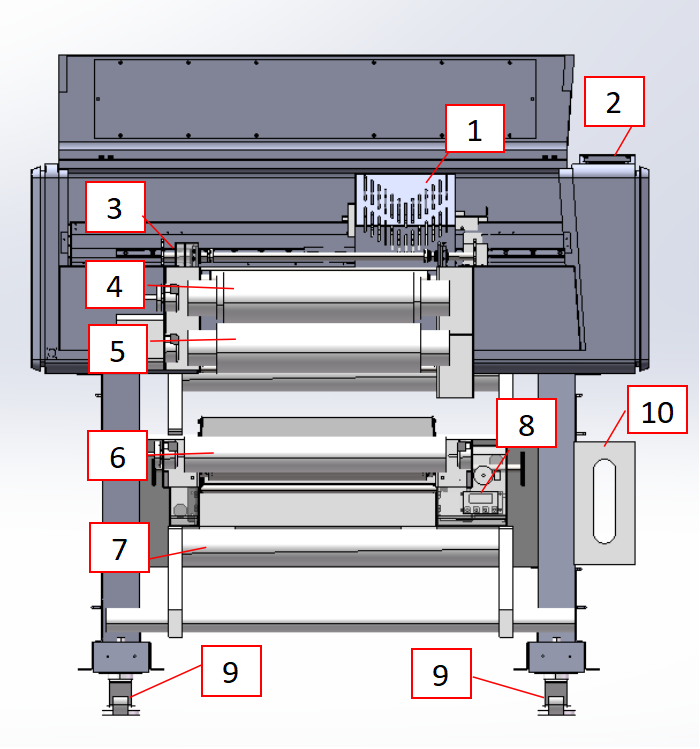 根據(jù)圖紙或視頻安裝腳座,安裝腳杯和輪子,固定打印機(jī)。