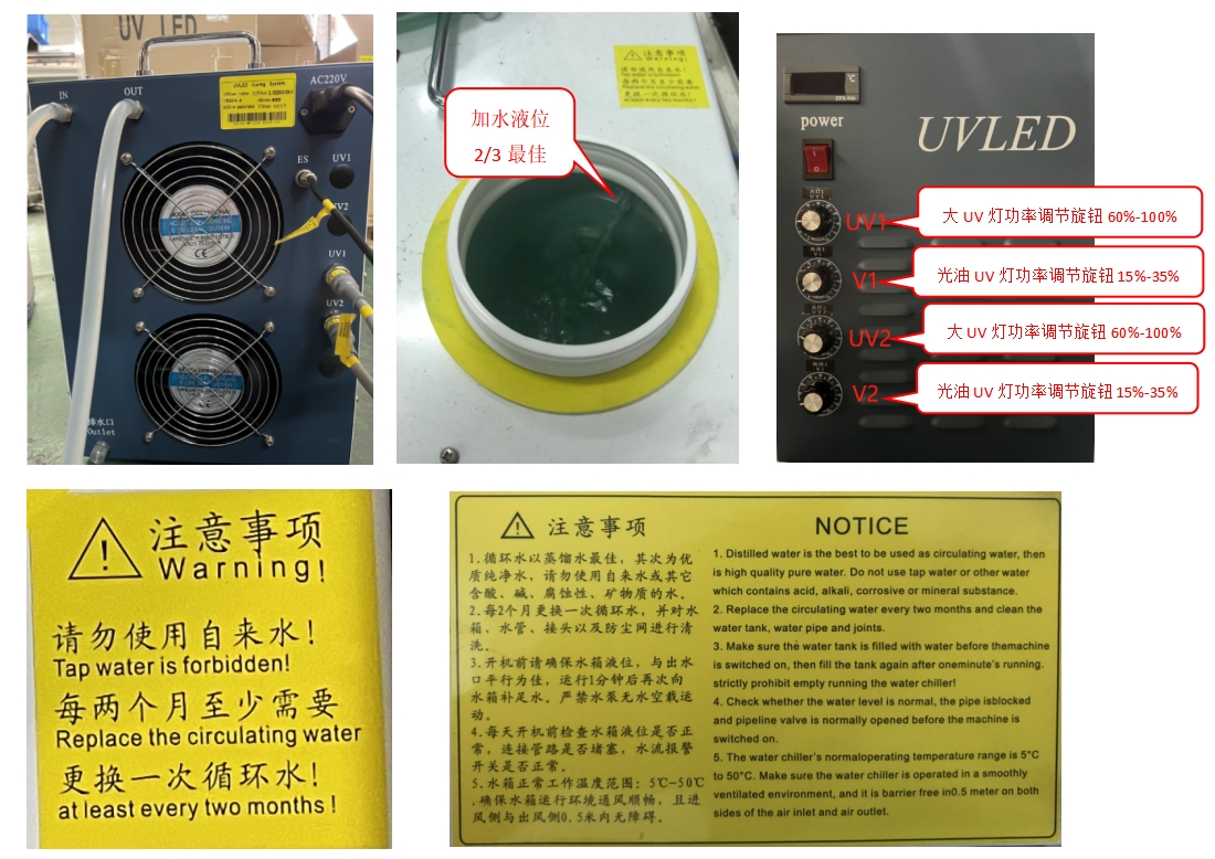 注意:插頭UV1和UV2必須對(duì)應(yīng)標(biāo)簽連接,不能接反。兩條水管不區(qū)分輸入和輸出,直接連接就可以。