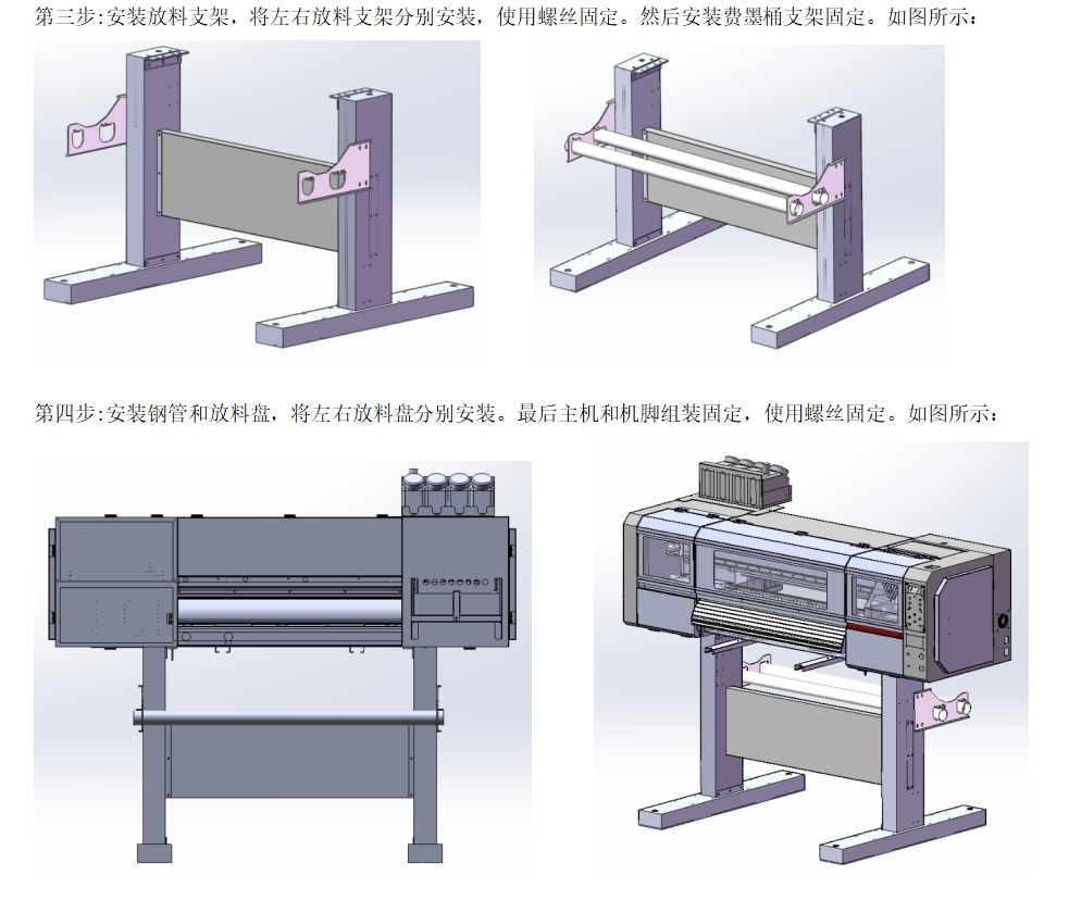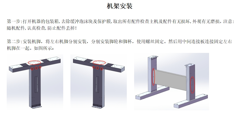 根據(jù)圖紙或視頻安裝腳座,安裝腳杯和輪子,固定打印機(jī)。