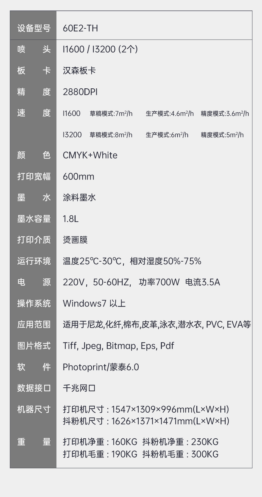 60E2-TH 雙頭白墨燙畫打印機(jī)環(huán)保經(jīng)濟(jì)款