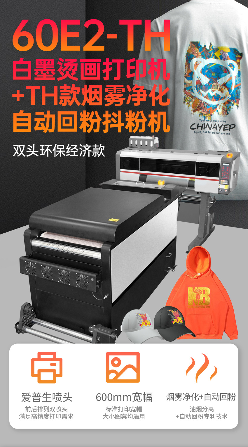 60E2-TH 雙頭白墨燙畫打印機(jī)+煙霧凈化自動(dòng)回粉抖粉機(jī)